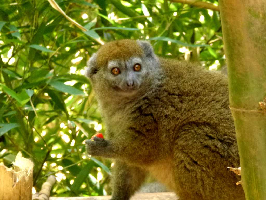 竹の葉を食べて暮らすタケキツネザル 哺乳類猿目キツネザル下目キツネザル科ジェントルキツネザル属