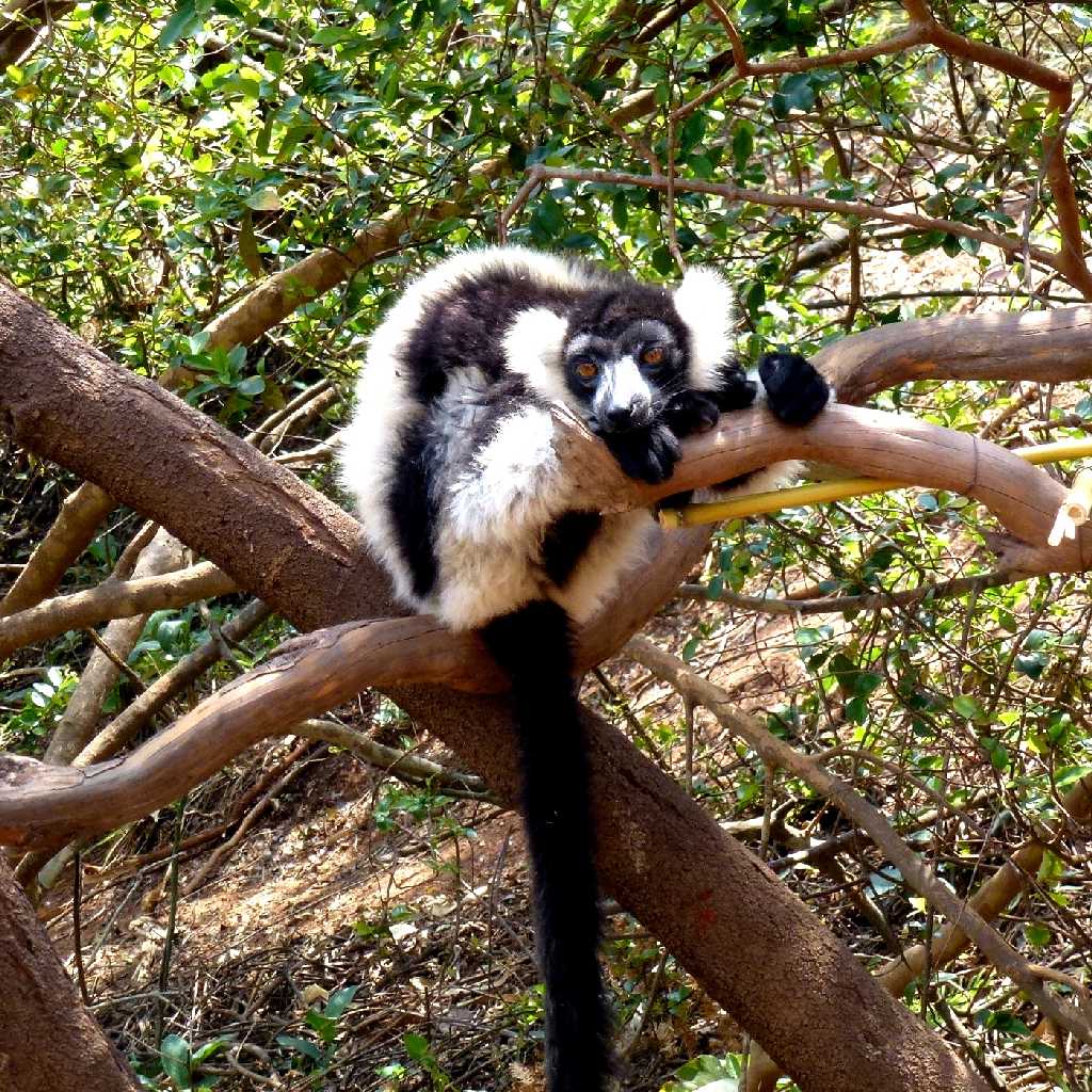 アンタナナリボ郊外のレムールパークのエリマキキツネザル 哺乳類猿目キツネザル下目キツネザル科エリマキキツネザル属